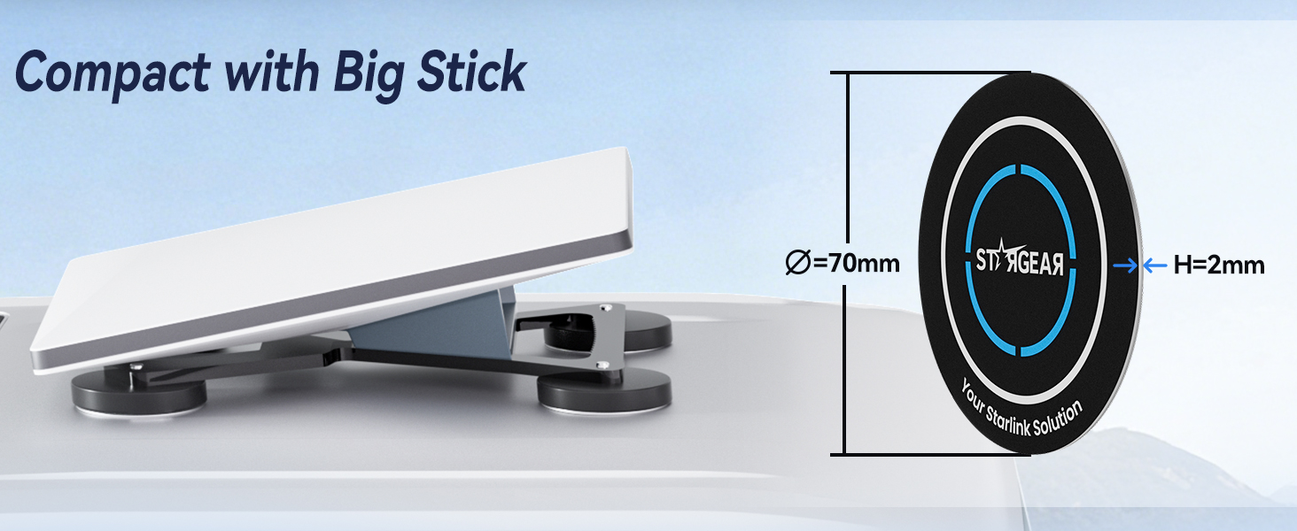 - Versatile Compatibility: The magnetic mounting plate fits seamlessly on aluminum or glass roofs of cars, trucks, and SUVs. STARGEAR magnetic mounting plates keep your Starlink Mini or Gen 3 stable and connected—on the highway or off-grid. A must-have starlink accessory for securely mounting your Starlink on non-magnetic roofs.