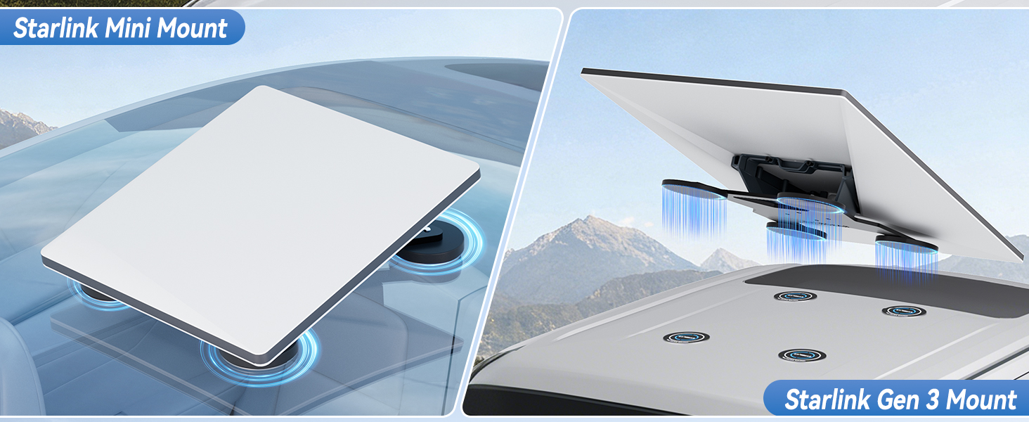- Versatile Compatibility: The magnetic mounting plate fits seamlessly on aluminum or glass roofs of cars, trucks, and SUVs. STARGEAR magnetic mounting plates keep your Starlink Mini or Gen 3 stable and connected—on the highway or off-grid. A must-have starlink accessory for securely mounting your Starlink on non-magnetic roofs.