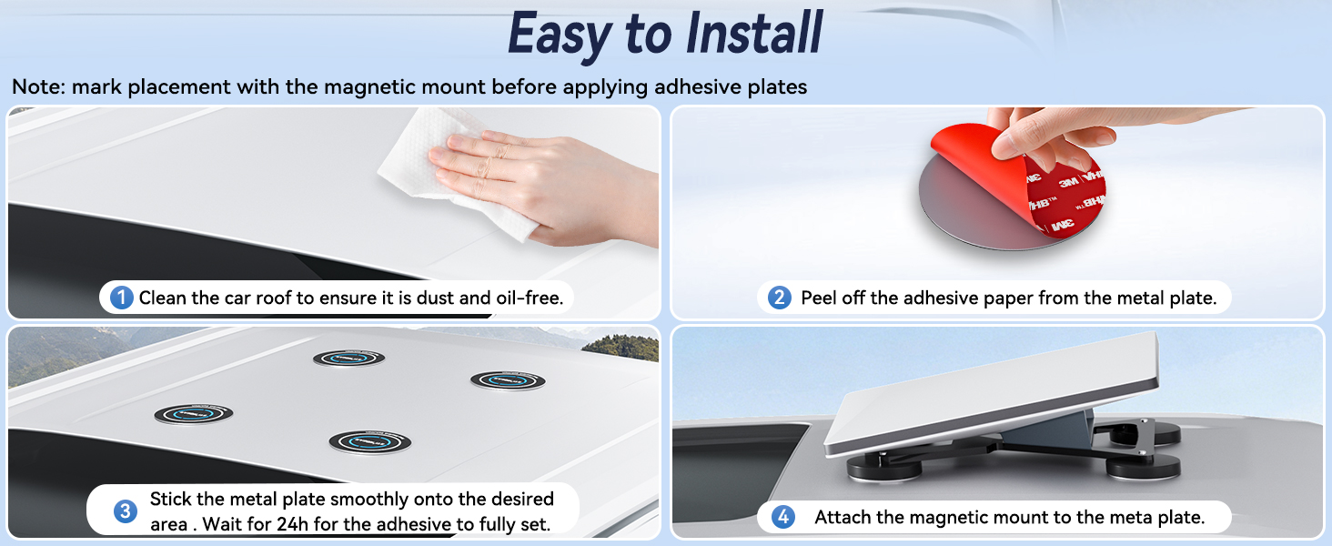 - Durable and Reliable Construction: Built to last, each premium coated magnetic plate is engineered for years of reliable performance. These waterproof and rust-resistant metal plates for magnetic mount ensure lasting protection. Together, the 4 adhesive metal plates for magnets provide a stable and secure setup for the Starlink Mini or Gen 3 magnetic car mount, keeping your satellite dish firmly in place.