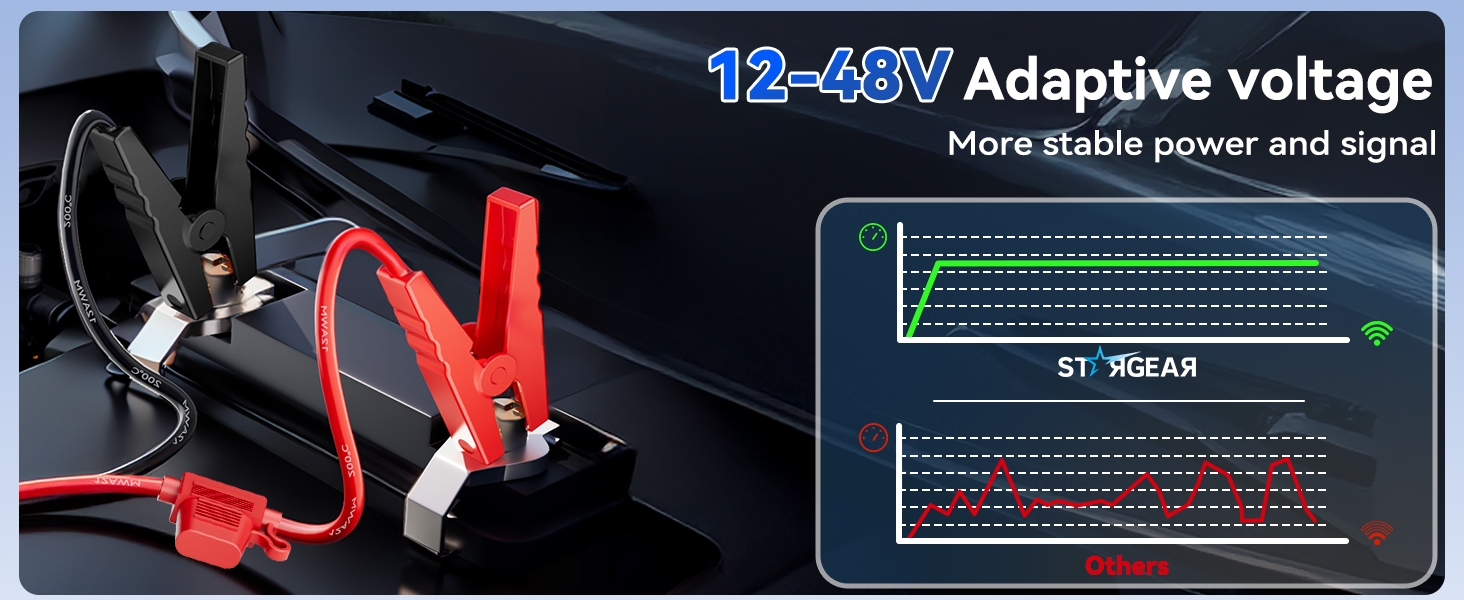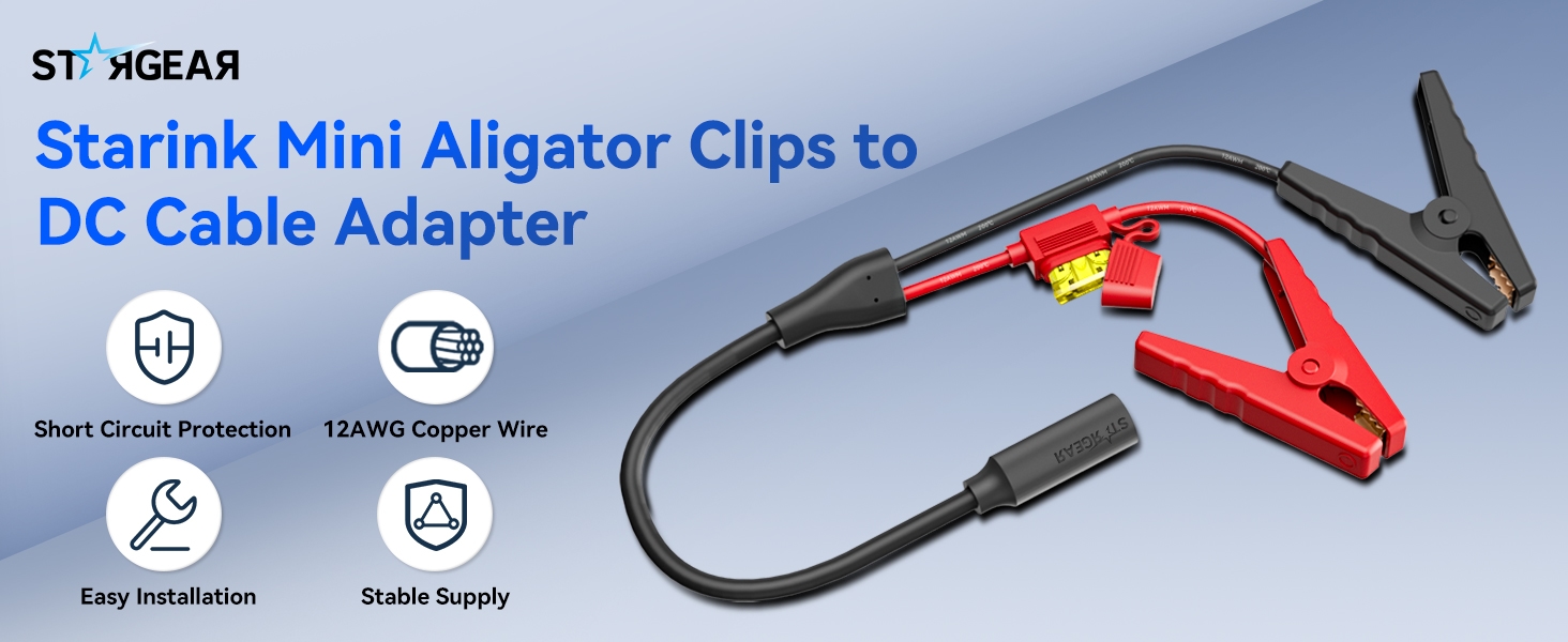 - [ Ultimate Power Solution for Starlink Mini ] Power your Starlink Mini anywhere! This Starlink Mini cable features heavy-duty alligator clips that connect directly to 12V-48V DC power sources like car batteries, portable generators, and solar setups. It delivers a stable pass-through power supply, ensuring your satellite internet stays online during road trips, camping, RV adventures, or off-grid living.