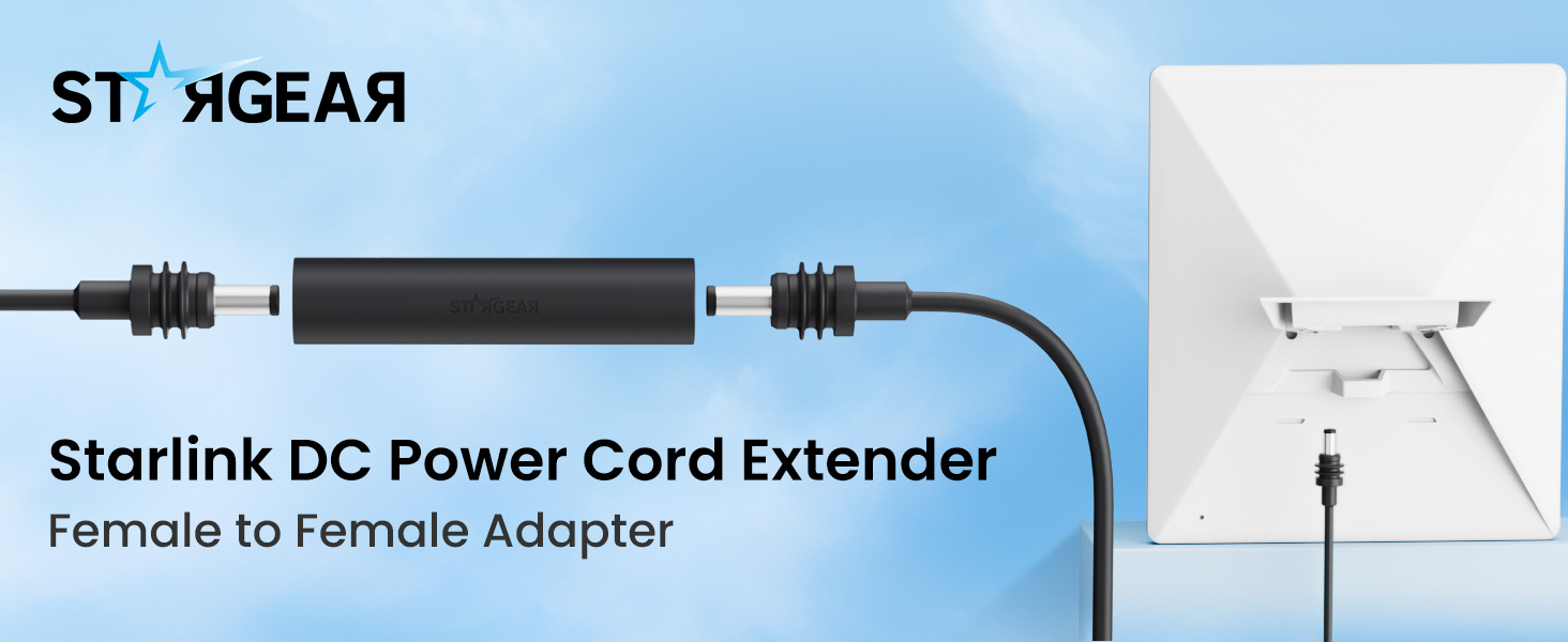 - Effortless Power Extension for Starlink Mini/Gen 3: Solve short cable frustrations! The essential starlink mini accessoryis a starlink dc power cord extender designed to seamlessly join two starlink mini power cable. Gain the freedom to position your dish farther for the strongest signal, whether connecting to the original starlink mini power supplyor a starlink mini battery adapter.