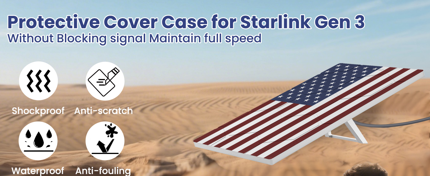 Starlink Gen 3 Protective Cover Case, Starlink Standard Gen 3 Case for Satellite Dish, Silicone Hail Protector Cover for Starlink Standard, Waterproof,Impact Resistant to Rocks/Sand/Hail, Flag