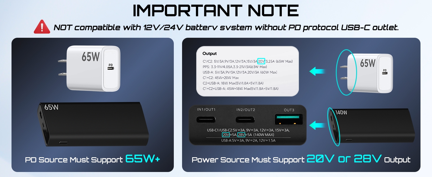 • 60W Minimum Power Output: STARGEAR starlink mini power cable supports minimum 60W(20v at 3A) or maximum 140W (28v at 5A) power outout. Starink Power Cord is NOT a boost or buck converter, please use a proper PD power adapter or PD power source which support min. 65W (20V at 3.25A) setting, the voltage and current capabilities will be listed on your power supply)