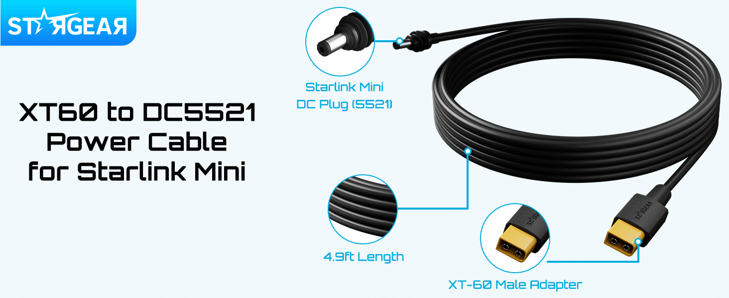 - Compatible with FPV Battery: STARGEAR Starlink Mini Cable 16AWG XT60-DC adapter specifically to ensure smooth, uninterrupted operation for your Starlink Mini, providing a seamless internet experience.