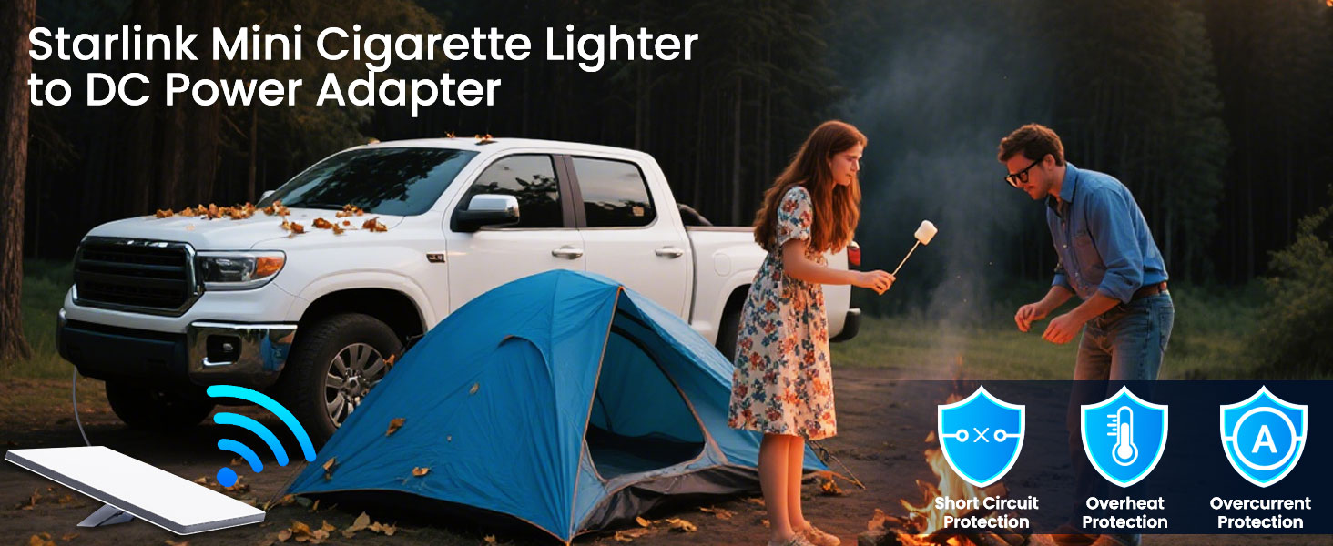 - [ Triple-Protection Cigarette Lighter Adapter ] Engineered for Starlink Mini with intelligent safety safeguards, the cigarette lighter to DC power adapter actively defends against short circuit protection, overheat protection, and overcurrent protection. Features efficient 12V→24V step-up conversion for all car cigarette lighter plugs, delivering uninterrupted power across deserts or alpine trails