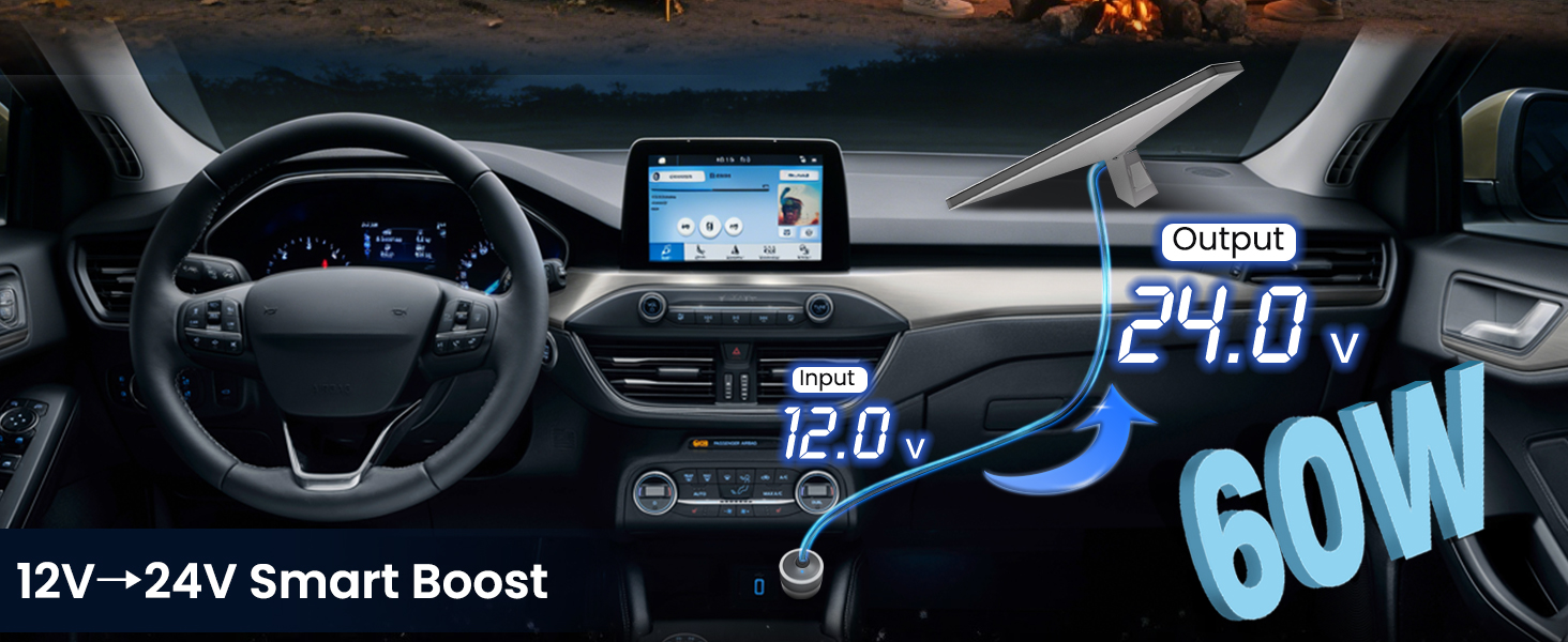 - [ Instant 24V Boost Power for Starlink Mini ] Convert any 12V/24V cigarette lighter adapter to stable 24V/2.5A output with intelligent DC-DC technology. Enjoy true plug and play charging with auto-voltage stabilization, ensuring safe operation of your Starlink Mini even extreme conditions (-20°C to 60°C). Universal cigarette lighter plug for cars, trucks, RVs and boats