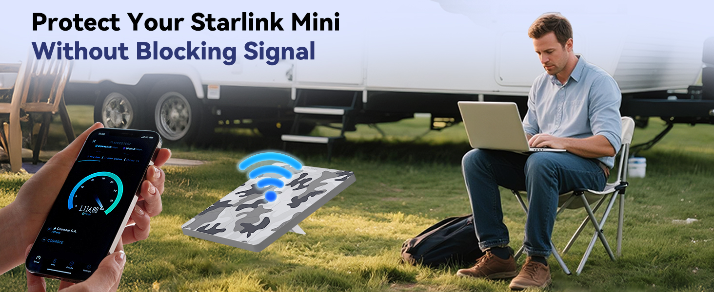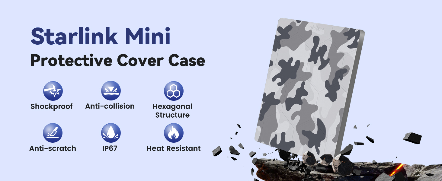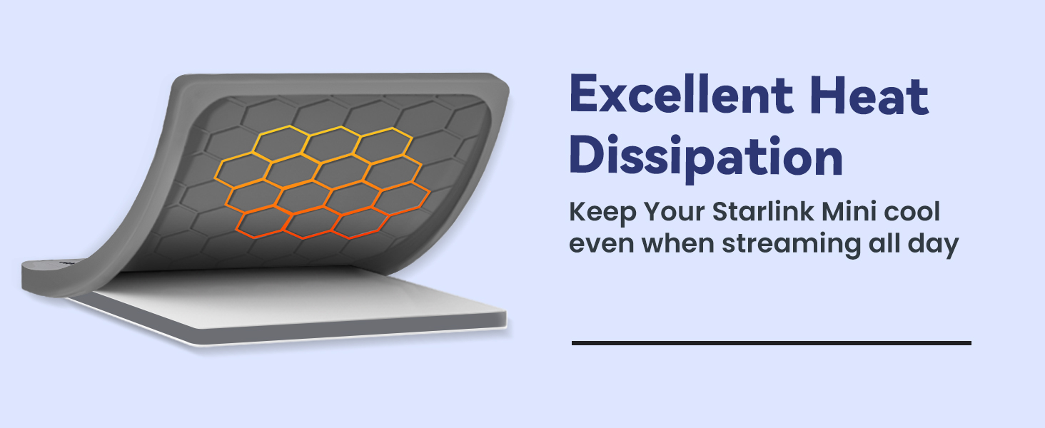 - [Shockproof & Heat Dissipation]Engineered to absorb impacts and disperse collision energy, the Starlink Mini Cover guards against bumps, drops, and vibrations. Its built-in honeycomb structure enhances heat dissipation, while the breathable layer prevents overheating during extended use. Ideal for RV trips and off-road adventures, it keeps your dish safe and cool.