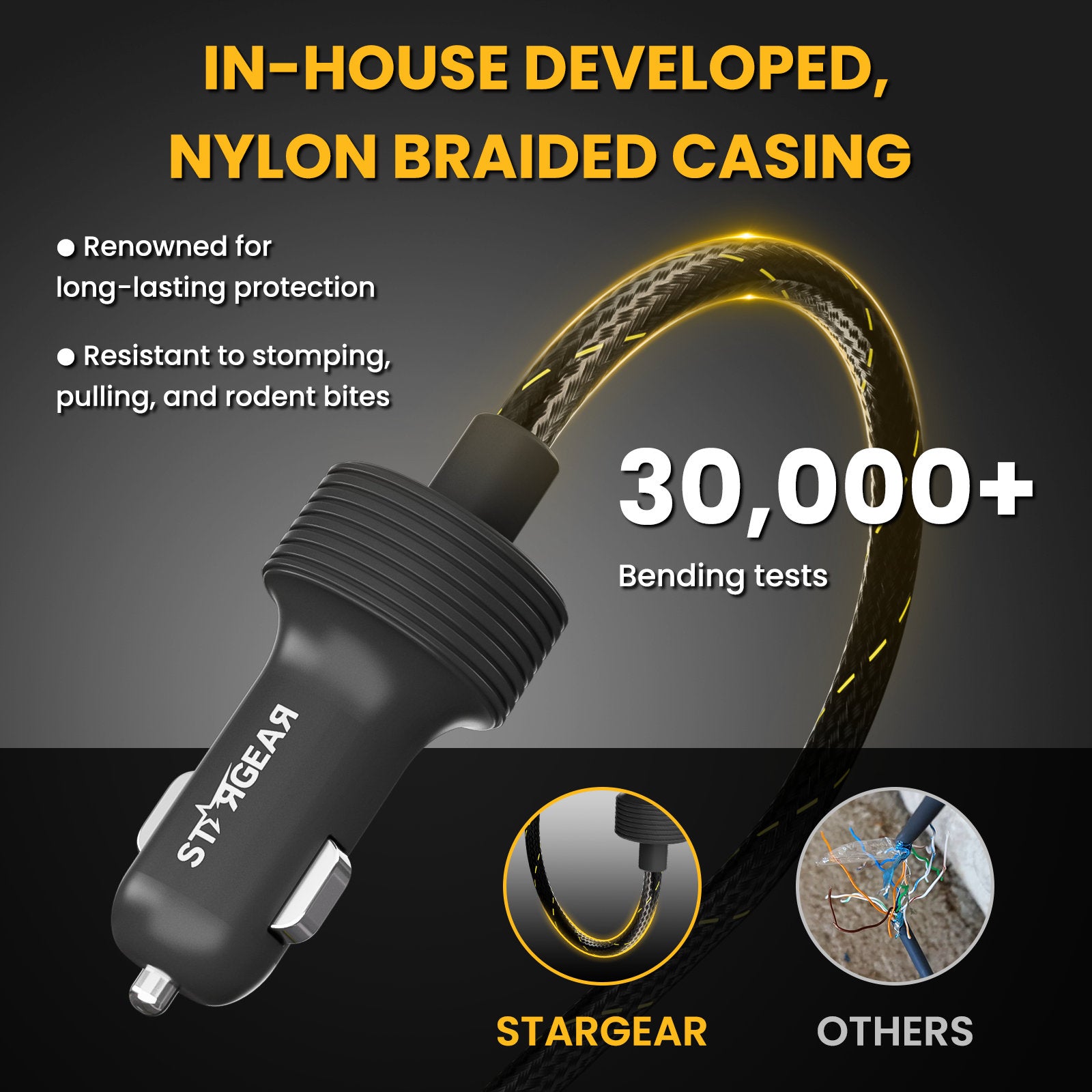 • Ultra-Durable DC To Cigarette Lighter Charger Adapter Cable: Reinforced with braided fiber for extreme longevity. Built to last, it features a robust strain relief design—withstanding repeated bending and flexing. Perfect for continuous on the go use, no more worries about breakage.