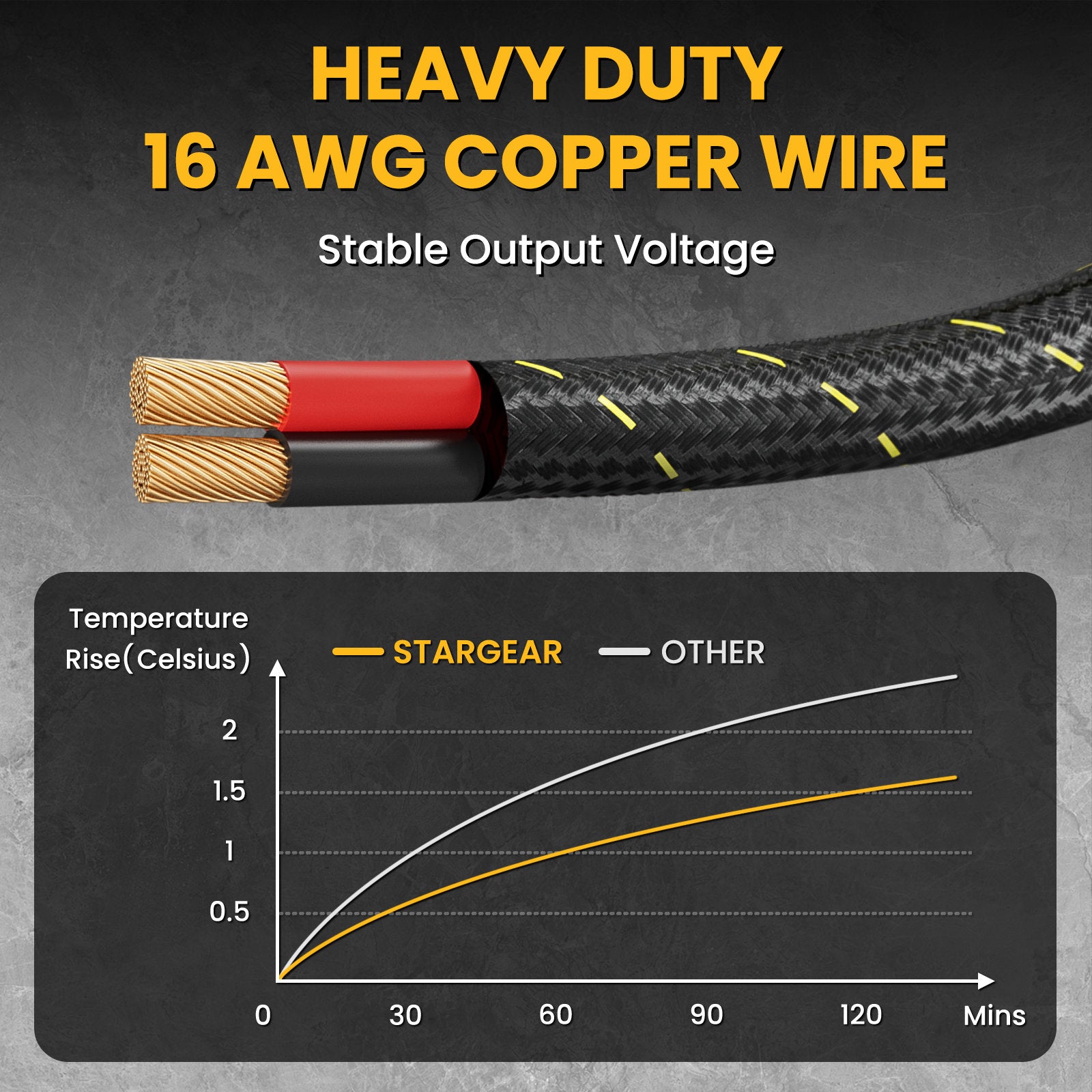 • Ultra Low Internal Resisstant: Tested with a 13.145V power supply and 5A load, the voltage drop is only 0.2V. After 30 minutes of using, the temperature rise is minimal at just 0.6°C, ensuring safe and efficient.